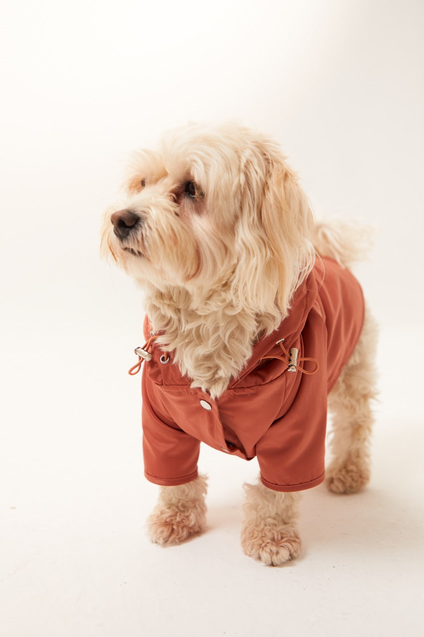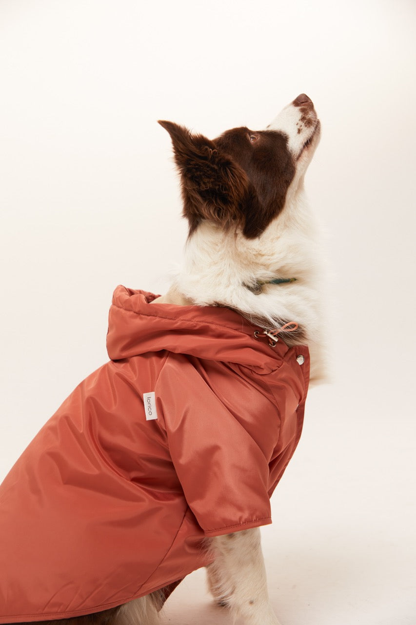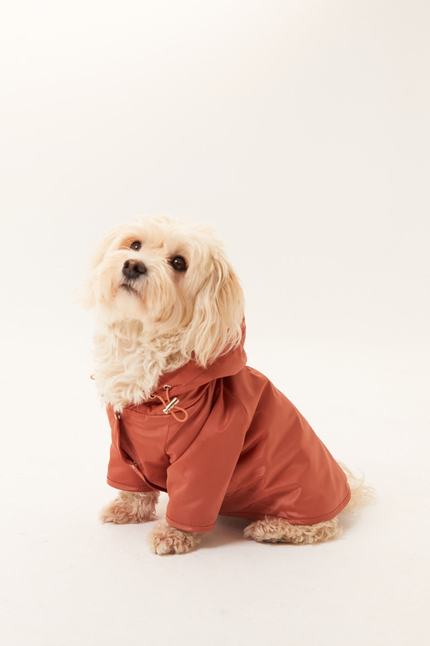 Dostlarımızın konforunu ön planda tutarak dışı esnek su itici özellikli kumaştan üretilmiştir. İç kısmı ince polardır. Kapüşonu lastik ve stoperle ayarlanabilmektedir. Önü çıt çıtlı ve rahat kesimdir. Sırt bölümünde bulunan tasma deliği sayesinde rahatça tasmasını giydirip yağmurlu havalarda dostunuzla eğlenceli yürüyüşler yapabilirsiniz.